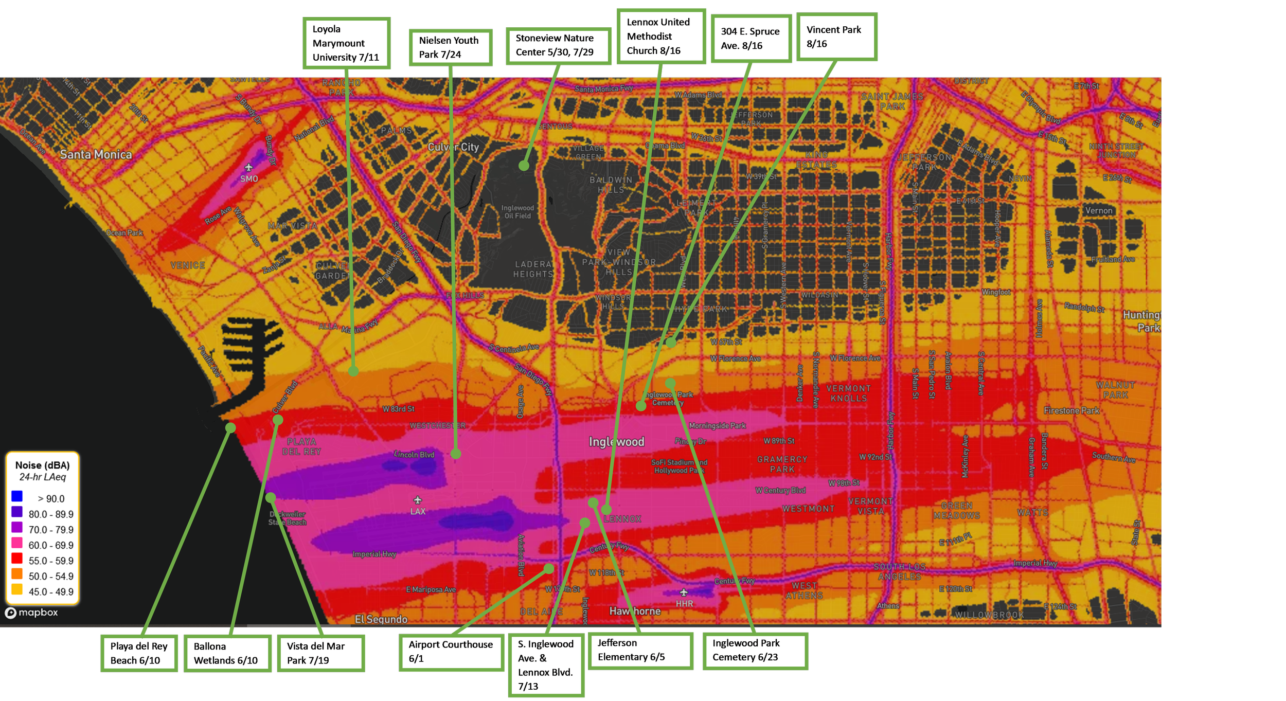 Noise map adapted from https://maps.dot.gov/BTS/NationalTransportationNoiseMap/.